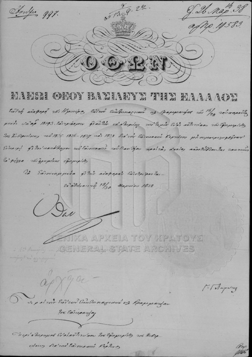 [Φάκελος] GRGSA-CSA_PAO013.S02.01.F001647 Φάκελος #1647 - Εφημερίς της Κυβερνήσεως [1838 - 1839] |