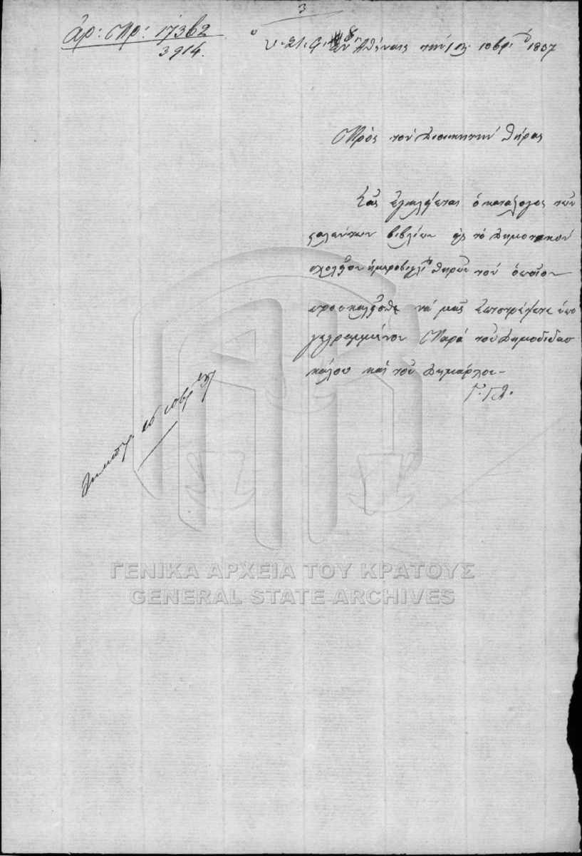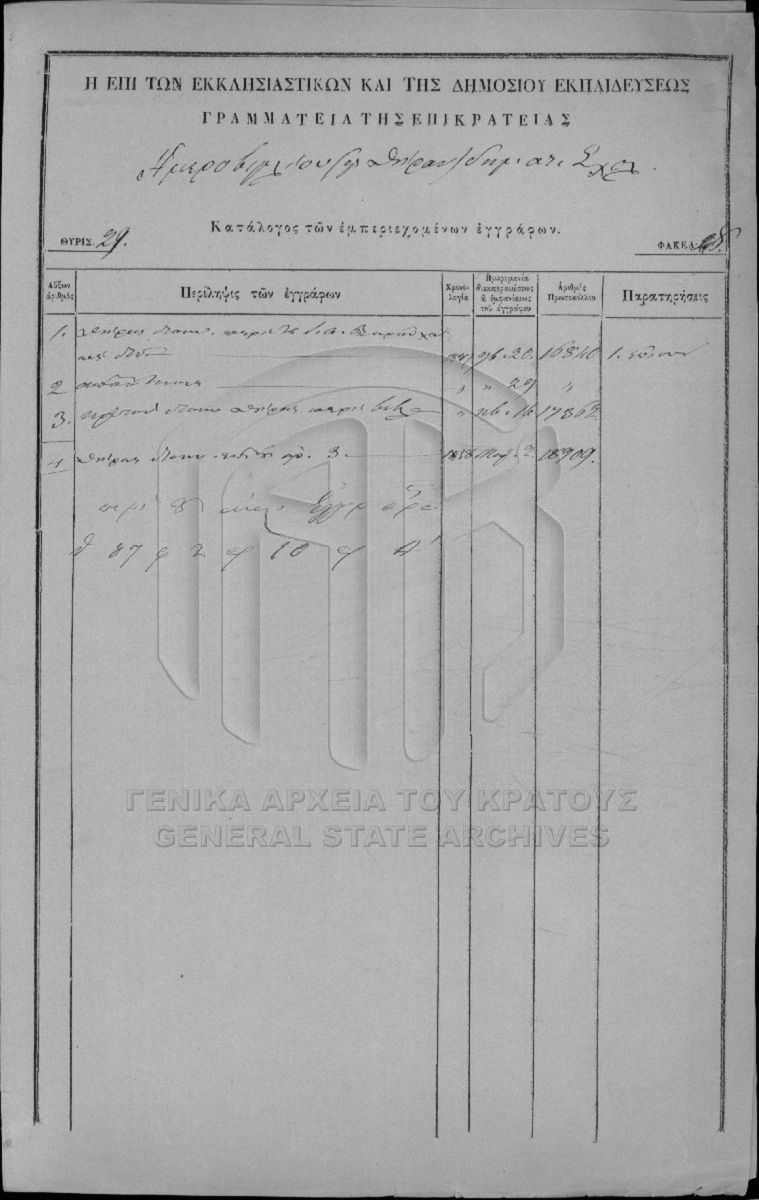 [Φάκελος] GRGSA-CSA_PAO013.S02.01.F001679 Φάκελος #1679 - Ημεροβιγλίου (εις Θήραν) δημοτικόν σχολείον [1837 - 1838] |
