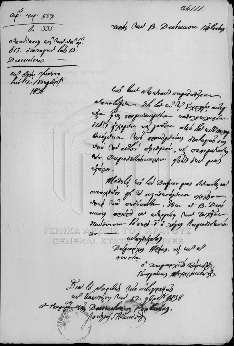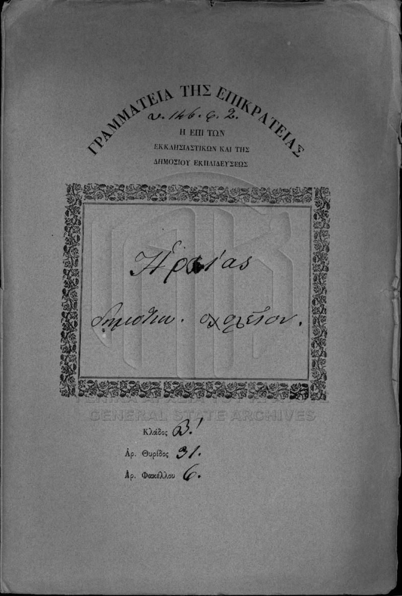 [Φάκελος] GRGSA-CSA_PAO013.S02.01.F001682 Φάκελος #1682 - Ηρείας δημοτικόν σχολείον [1838] |