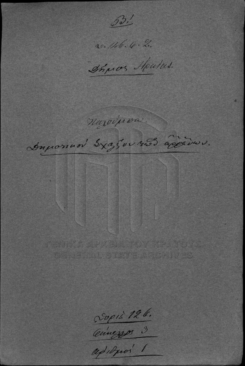 [Φάκελος] GRGSA-CSA_PAO013.S02.01.F001685 Φάκελος #1685 - Δήμος Ηραίας, Παλούμπα. Δημοτικόν Σχολείον των αρρένων |