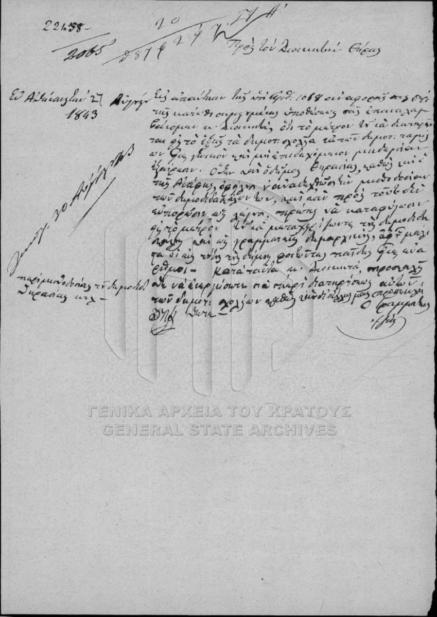[Fonds] GRGSA-CSA_PAO013 ARCHIVES DE LA CHANCELLERIE/DU MINISTERE DES CULTES ET DE L'EDUCATION PUBLIQUE (1833-1848) - ARCHIVES DE LA CHANCELLERIE/DU MINISTERE DES CULTES ET DE L'EDUCATION PUBLIQUE (1833-1848) [1833 - 1848] Το αρχείο της Γραμματείας επί των Εκκλησιαστικών και της Δημοσίου Εκπαιδεύσεως διαρθρώνεται σε τρεις σειρές ως εξής: Ι. Σειρά των Εκκλη... |