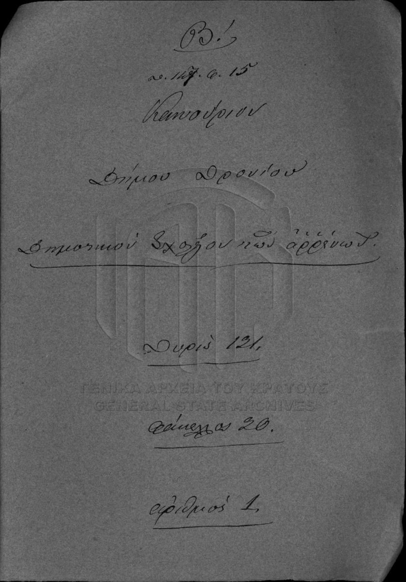 [File] GRGSA-CSA_PAO013.S02.01.F001723 File #1723 - SECRETARIAT/MINISTRY OF ECCLESIASTICAL ISSUES AND STATE EDUCATION ARCHIVE (1833-1848) [1846 - 1847] Kakourion, Throniou Municipality, boys’ elementary school. |