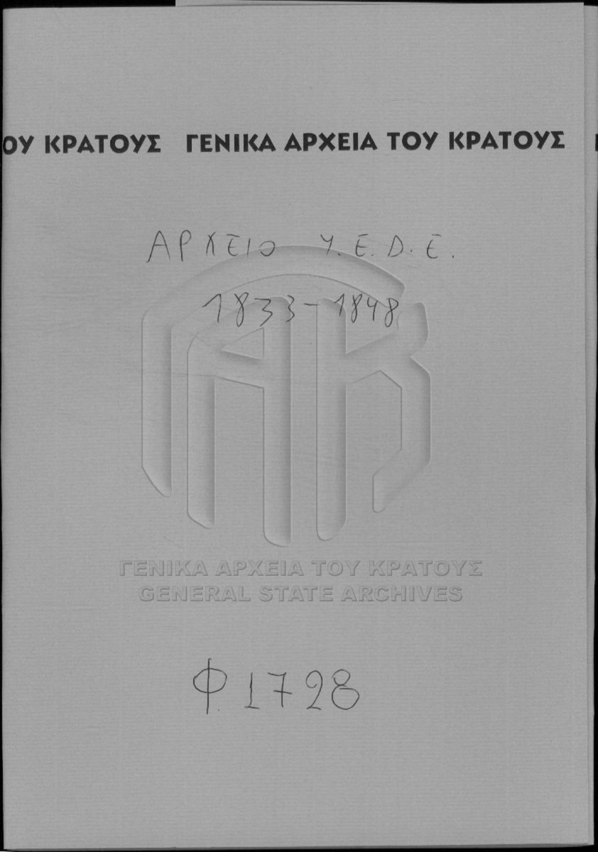 [Fonds] GRGSA-CSA_PAO013 SECRETARIAT/MINISTRY OF ECCLESIASTICAL ISSUES AND STATE EDUCATION ARCHIVE (1833-1848) - SECRETARIAT/MINISTRY OF ECCLESIASTICAL ISSUES AND STATE EDUCATION ARCHIVE (1833-1848) [1833 - 1848] Το αρχείο της Γραμματείας επί των Εκκλησιαστικών και της Δημοσίου Εκπαιδεύσεως διαρθρώνεται σε τρεις σειρές ως εξής: Ι. Σειρά των Εκκλη... |