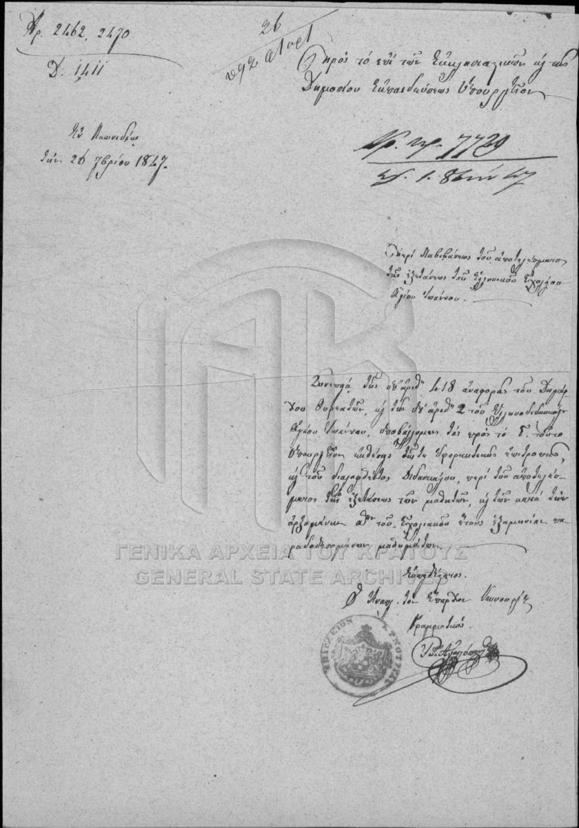[File] GRGSA-CSA_PAO013.S02.01.F001728 File #1728 - SECRETARIAT/MINISTRY OF ECCLESIASTICAL ISSUES AND STATE EDUCATION ARCHIVE (1833-1848) [1847] Thyrea Greek School. |
