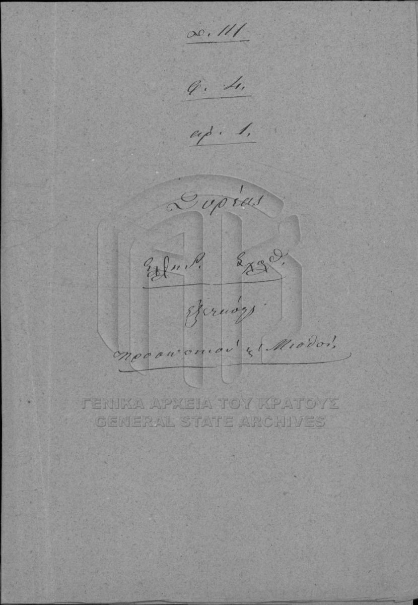 [Fonds] GRGSA-CSA_PAO013 SECRETARIAT/MINISTRY OF ECCLESIASTICAL ISSUES AND STATE EDUCATION ARCHIVE (1833-1848) - SECRETARIAT/MINISTRY OF ECCLESIASTICAL ISSUES AND STATE EDUCATION ARCHIVE (1833-1848) [1833 - 1848] Το αρχείο της Γραμματείας επί των Εκκλησιαστικών και της Δημοσίου Εκπαιδεύσεως διαρθρώνεται σε τρεις σειρές ως εξής: Ι. Σειρά των Εκκλη... |
