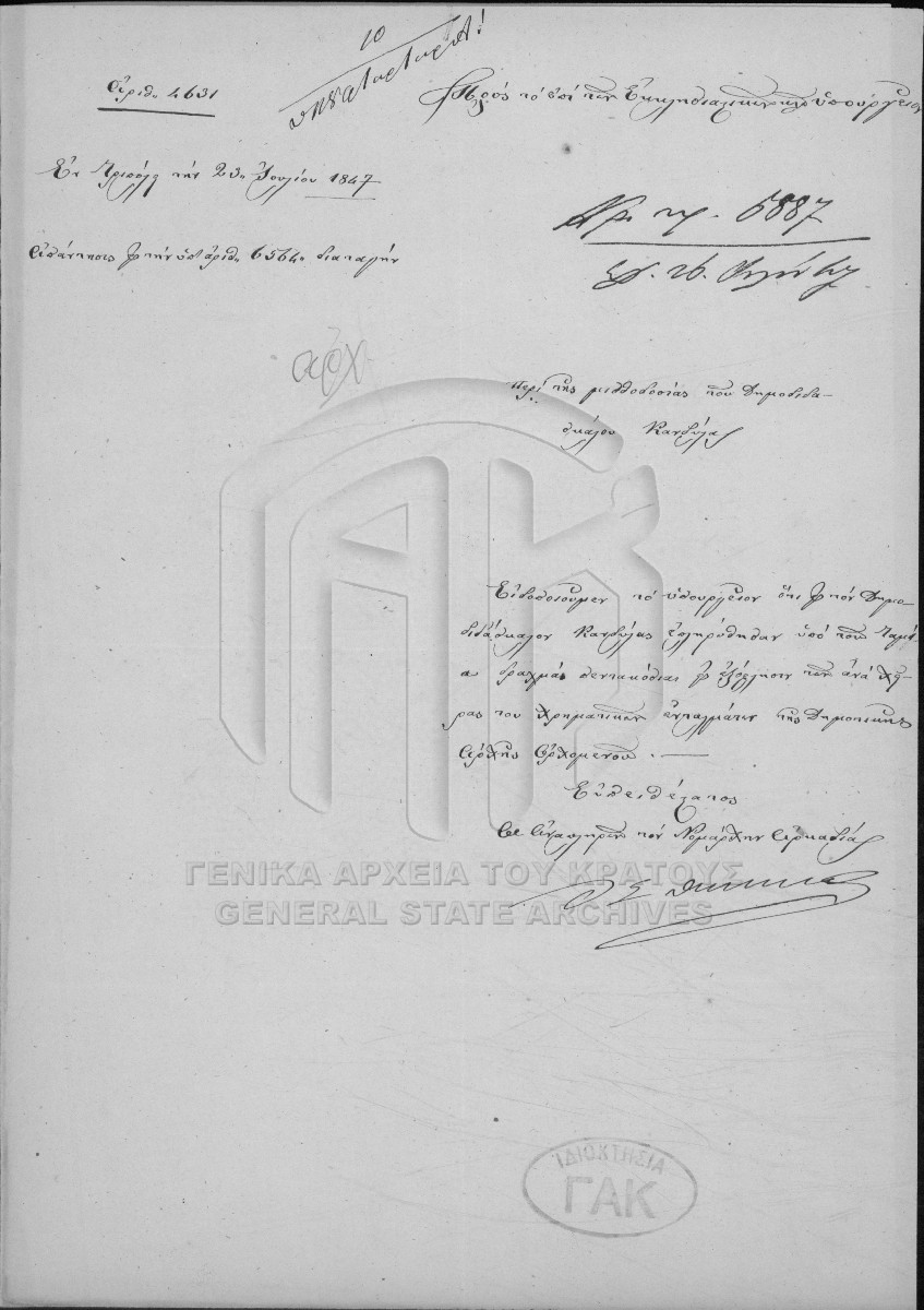 Φάκελος #1818 - Κανδήλας Δήμου Ορχομενού Δημοτικόν Σχολείον των αρρένων  [1846 - 1847]