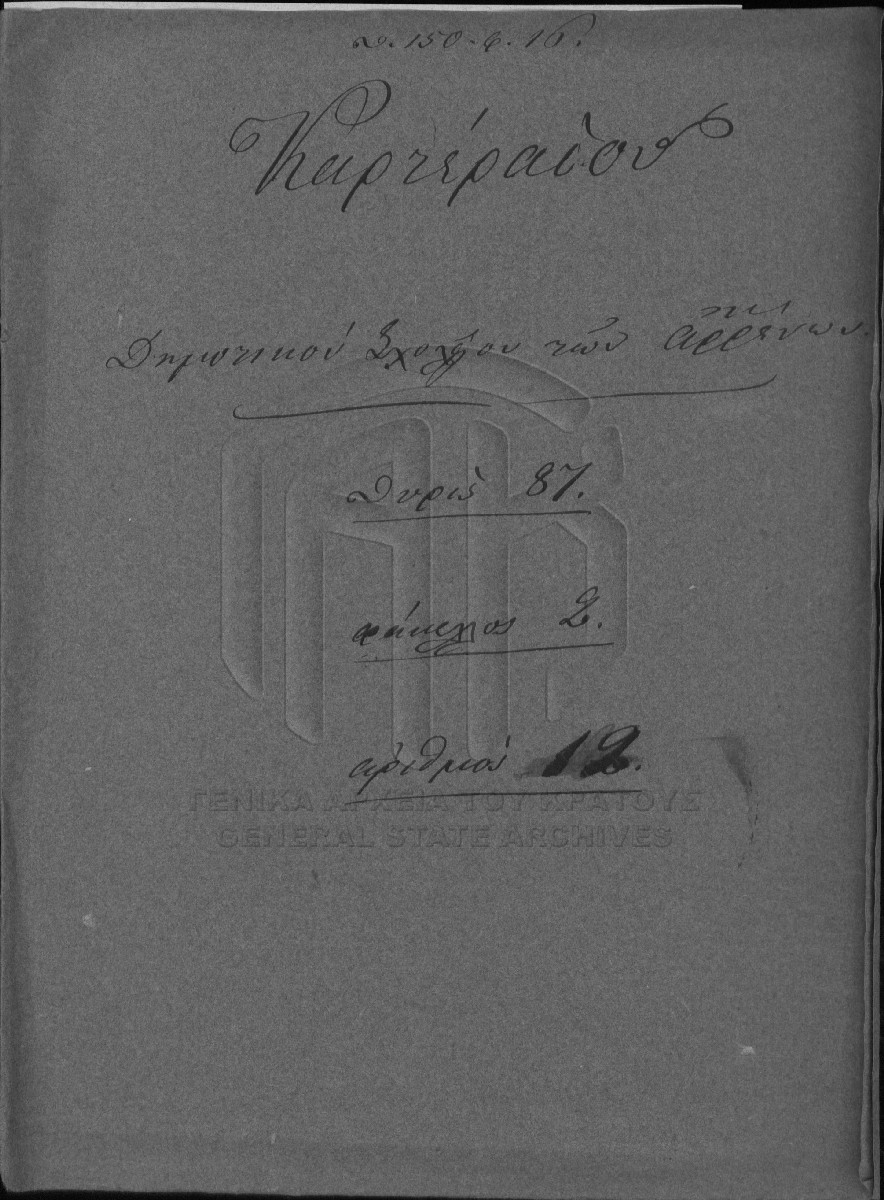 [File] GRGSA-CSA_PAO013.S02.01.F001830 File #1830 - SECRETARIAT/MINISTRY OF ECCLESIASTICAL ISSUES AND STATE EDUCATION ARCHIVE (1833-1848) [1844] Karterado boys’ elementary school. |