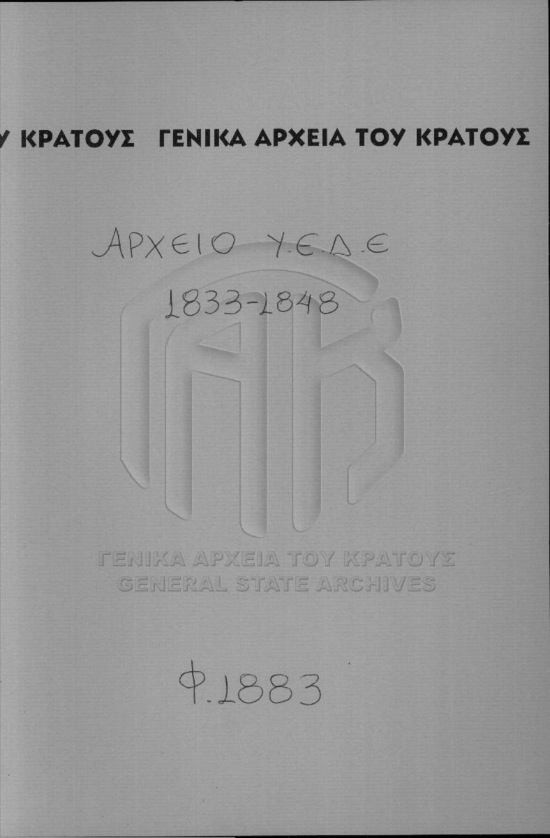 [Fonds] GRGSA-CSA_PAO013 SECRETARIAT/MINISTRY OF ECCLESIASTICAL ISSUES AND STATE EDUCATION ARCHIVE (1833-1848) - SECRETARIAT/MINISTRY OF ECCLESIASTICAL ISSUES AND STATE EDUCATION ARCHIVE (1833-1848) [1833 - 1848] Το αρχείο της Γραμματείας επί των Εκκλησιαστικών και της Δημοσίου Εκπαιδεύσεως διαρθρώνεται σε τρεις σειρές ως εξής: Ι. Σειρά των Εκκλη...  |