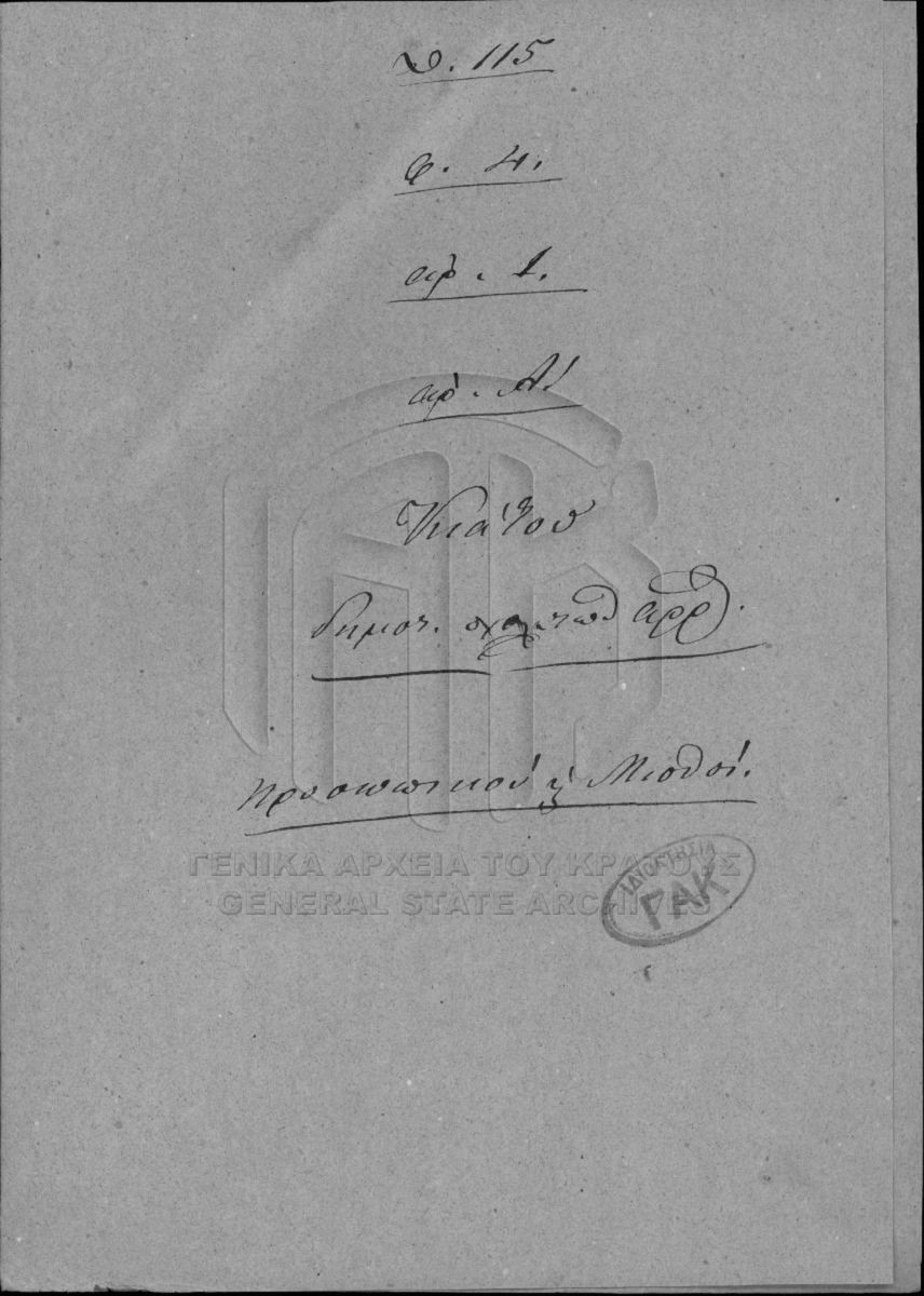 [Fonds] GRGSA-CSA_PAO013 SECRETARIAT/MINISTRY OF ECCLESIASTICAL ISSUES AND STATE EDUCATION ARCHIVE (1833-1848) - SECRETARIAT/MINISTRY OF ECCLESIASTICAL ISSUES AND STATE EDUCATION ARCHIVE (1833-1848) [1833 - 1848] Το αρχείο της Γραμματείας επί των Εκκλησιαστικών και της Δημοσίου Εκπαιδεύσεως διαρθρώνεται σε τρεις σειρές ως εξής: Ι. Σειρά των Εκκλη...  |