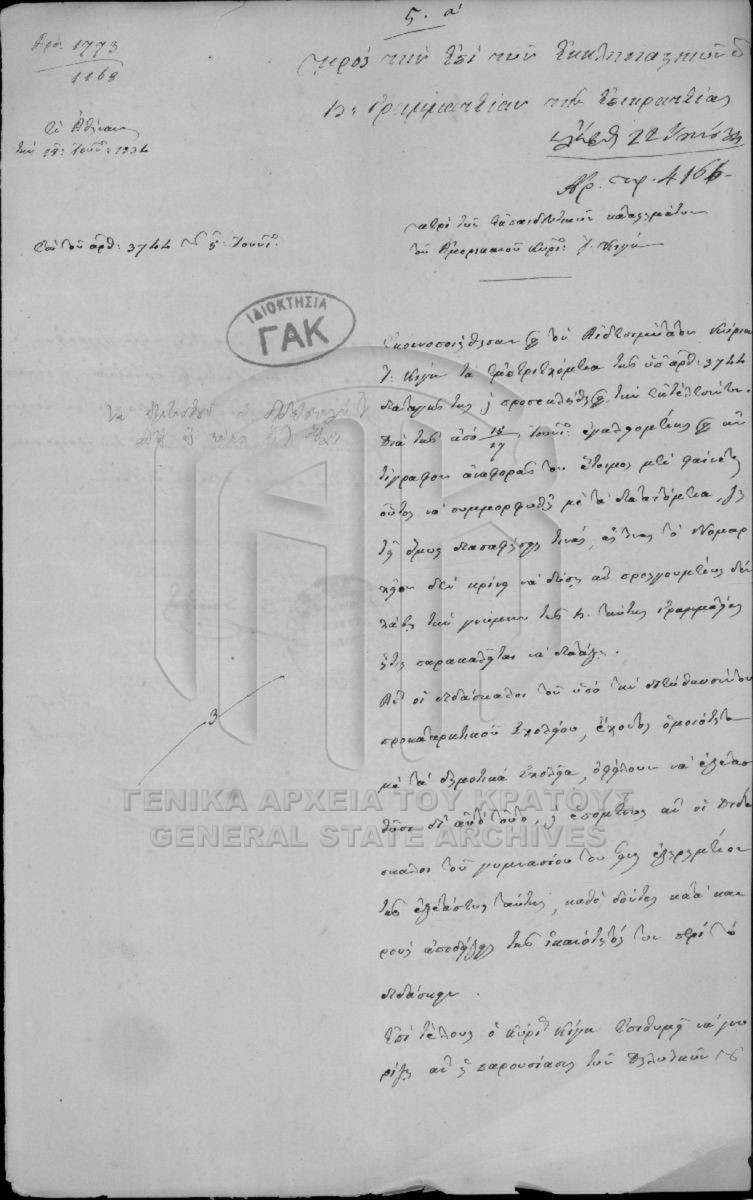 [File] GRGSA-CSA_PAO013.S02.01.F001888 File #1888 - SECRETARIAT/MINISTRY OF ECCLESIASTICAL ISSUES AND STATE EDUCATION ARCHIVE (1833-1848) [1834] Athens School-Houses directed by K. Ioanas Kig. |
