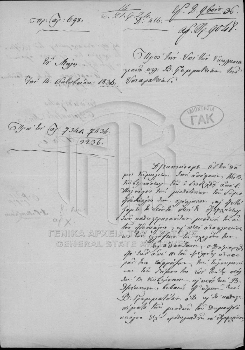 [Fonds] GRGSA-CSA_PAO013 SECRETARIAT/MINISTRY OF ECCLESIASTICAL ISSUES AND STATE EDUCATION ARCHIVE (1833-1848) - SECRETARIAT/MINISTRY OF ECCLESIASTICAL ISSUES AND STATE EDUCATION ARCHIVE (1833-1848) [1833 - 1848] Το αρχείο της Γραμματείας επί των Εκκλησιαστικών και της Δημοσίου Εκπαιδεύσεως διαρθρώνεται σε τρεις σειρές ως εξής: Ι. Σειρά των Εκκλη... |