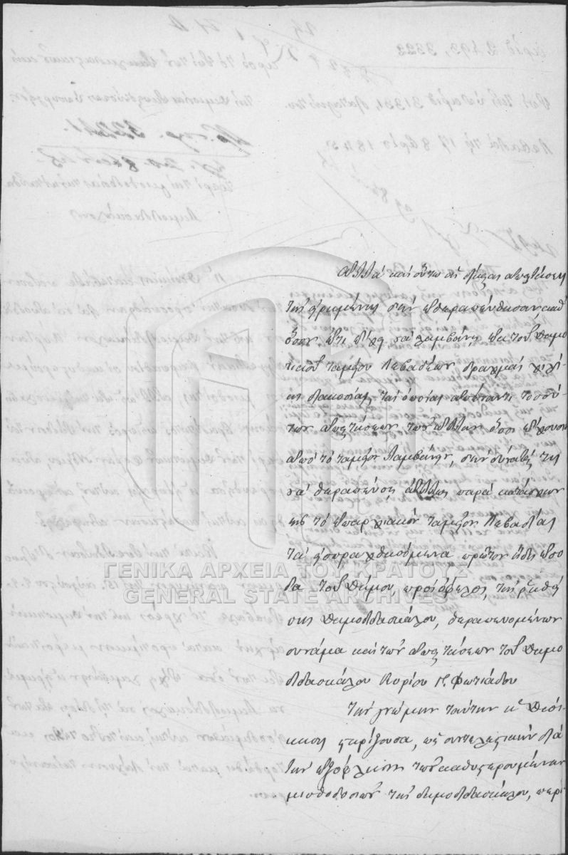 [Fonds] GRGSA-CSA_PAO013 ARCHIVES DE LA CHANCELLERIE/DU MINISTERE DES CULTES ET DE L'EDUCATION PUBLIQUE (1833-1848) - ARCHIVES DE LA CHANCELLERIE/DU MINISTERE DES CULTES ET DE L'EDUCATION PUBLIQUE (1833-1848) [1833 - 1848] Το αρχείο της Γραμματείας επί των Εκκλησιαστικών και της Δημοσίου Εκπαιδεύσεως διαρθρώνεται σε τρεις σειρές ως εξής: Ι. Σειρά των Εκκλη... |