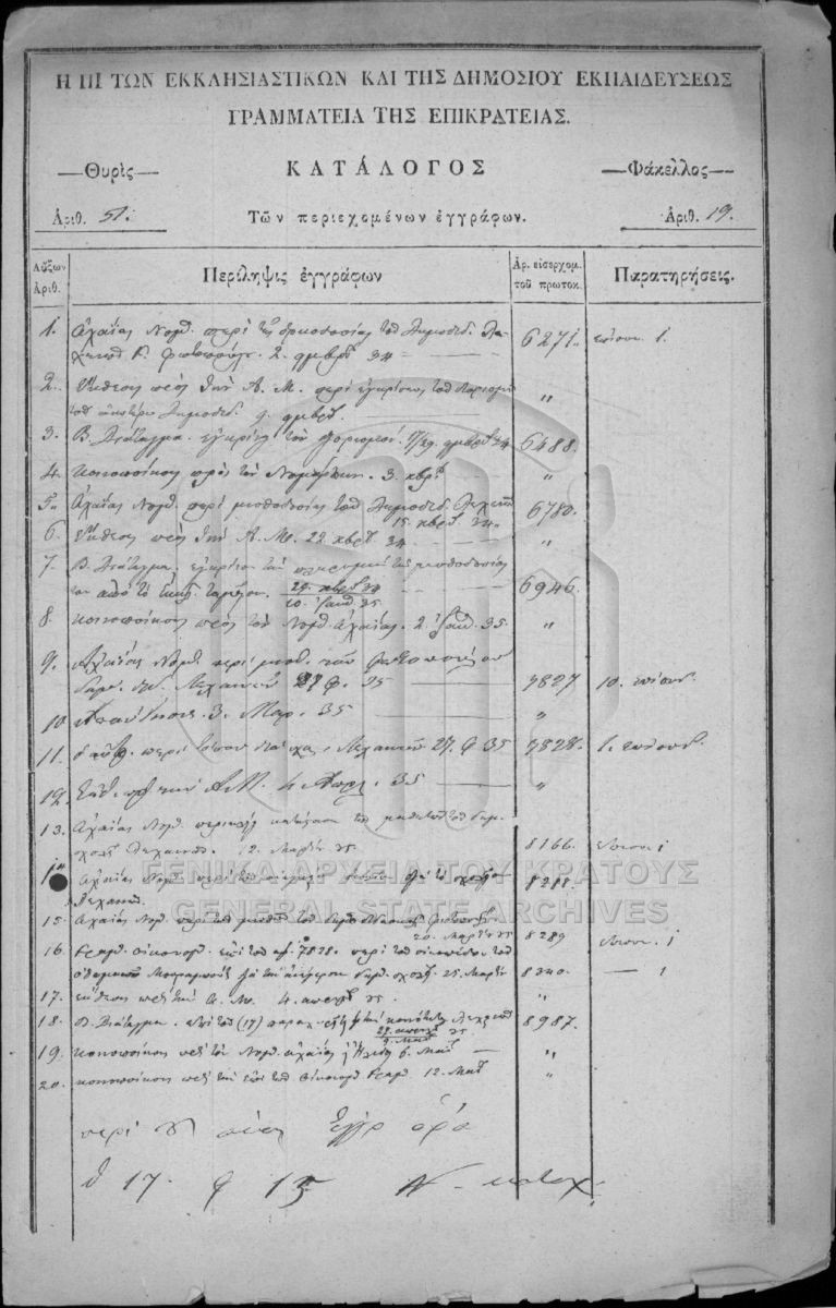 Το αρχείο της Γραμματείας επί των Εκκλησιαστικών και της Δημοσίου Εκπαιδεύσεως διαρθρώνεται σε τρεις σειρές ως εξής: Ι. Σειρά των Εκκλη...