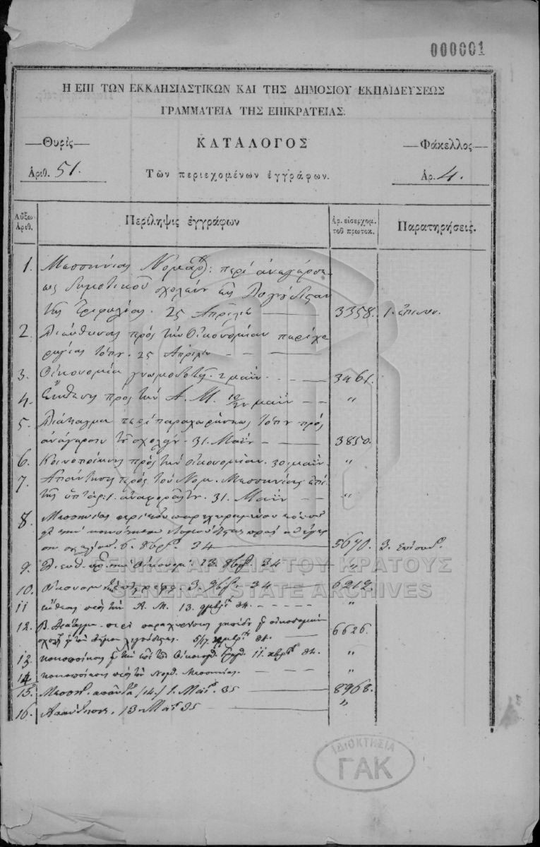 [Fonds] GRGSA-CSA_PAO013 SECRETARIAT/MINISTRY OF ECCLESIASTICAL ISSUES AND STATE EDUCATION ARCHIVE (1833-1848) - SECRETARIAT/MINISTRY OF ECCLESIASTICAL ISSUES AND STATE EDUCATION ARCHIVE (1833-1848) [1833 - 1848] Το αρχείο της Γραμματείας επί των Εκκλησιαστικών και της Δημοσίου Εκπαιδεύσεως διαρθρώνεται σε τρεις σειρές ως εξής: Ι. Σειρά των Εκκλη... |