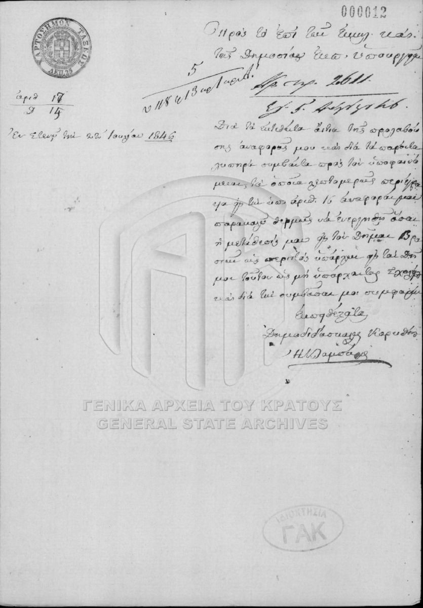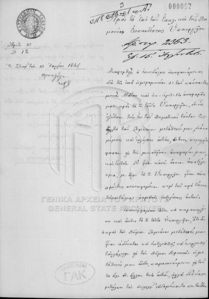 [Fonds] GRGSA-CSA_PAO013 SECRETARIAT/MINISTRY OF ECCLESIASTICAL ISSUES AND STATE EDUCATION ARCHIVE (1833-1848) - SECRETARIAT/MINISTRY OF ECCLESIASTICAL ISSUES AND STATE EDUCATION ARCHIVE (1833-1848) [1833 - 1848] Το αρχείο της Γραμματείας επί των Εκκλησιαστικών και της Δημοσίου Εκπαιδεύσεως διαρθρώνεται σε τρεις σειρές ως εξής: Ι. Σειρά των Εκκλη... |