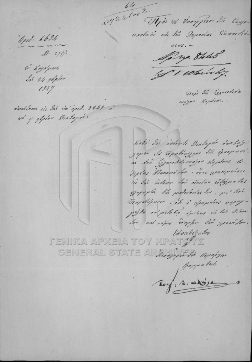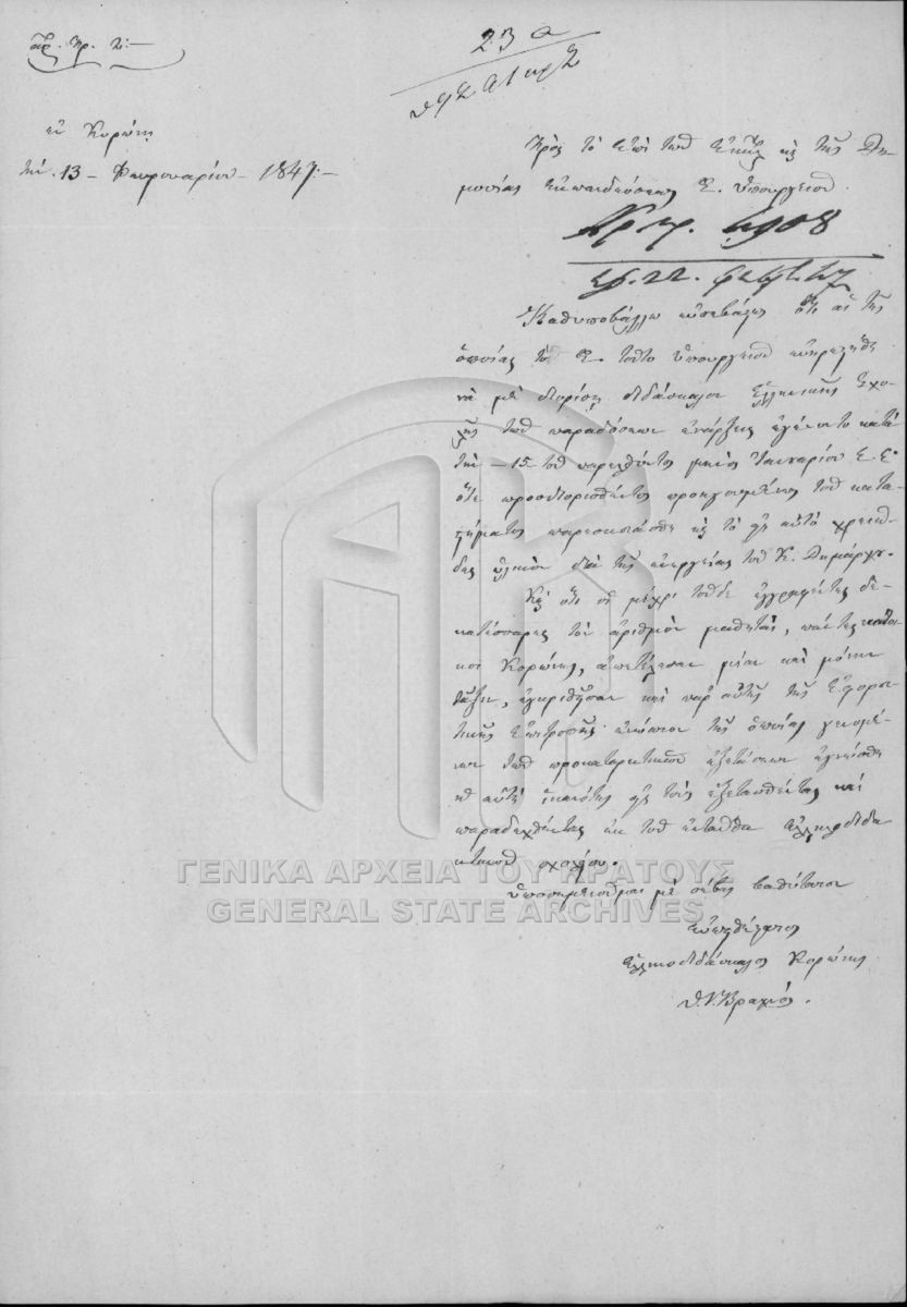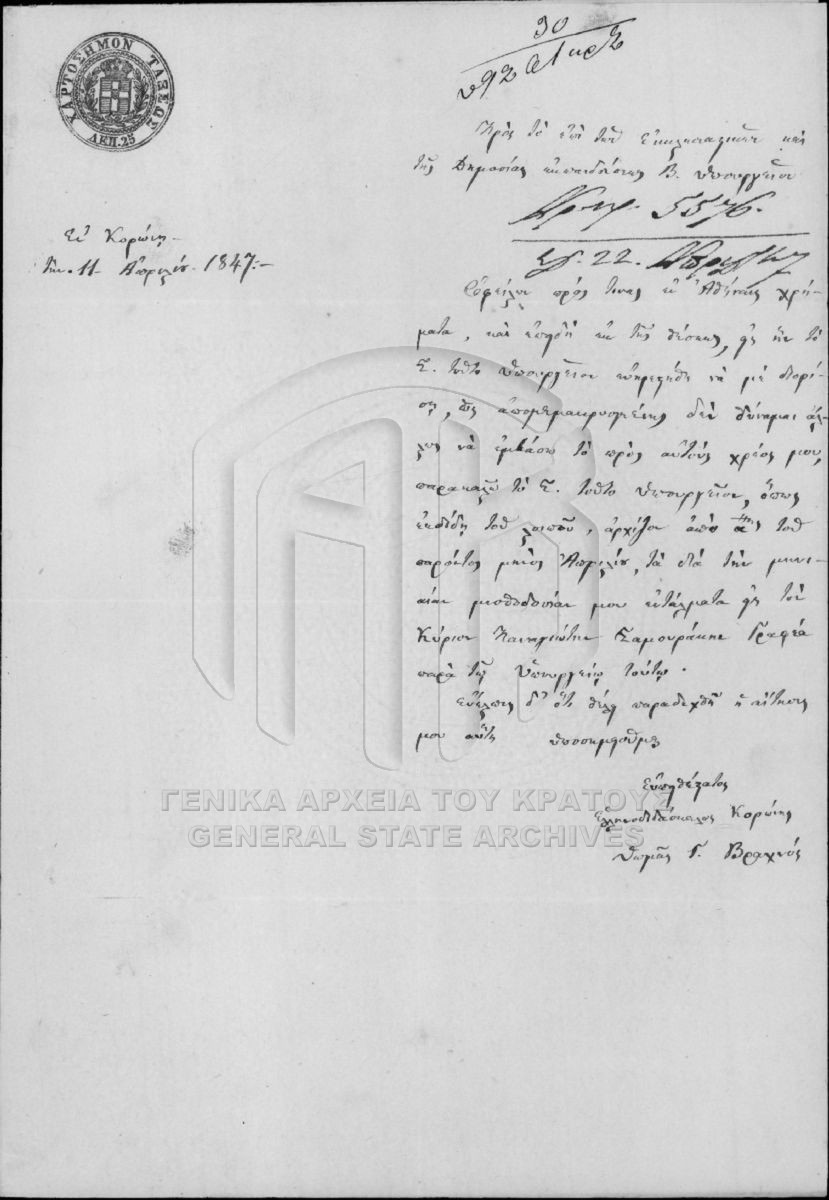 [Φάκελος] GRGSA-CSA_PAO013.S02.01.F001933 Φάκελος #1933 - Κορώνης Ελληνικόν Σχολείον [1847] |