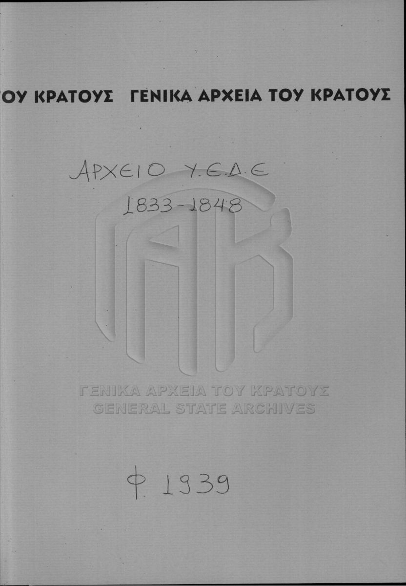 [Fonds] GRGSA-CSA_PAO013 SECRETARIAT/MINISTRY OF ECCLESIASTICAL ISSUES AND STATE EDUCATION ARCHIVE (1833-1848) - SECRETARIAT/MINISTRY OF ECCLESIASTICAL ISSUES AND STATE EDUCATION ARCHIVE (1833-1848) [1833 - 1848] Το αρχείο της Γραμματείας επί των Εκκλησιαστικών και της Δημοσίου Εκπαιδεύσεως διαρθρώνεται σε τρεις σειρές ως εξής: Ι. Σειρά των Εκκλη... |