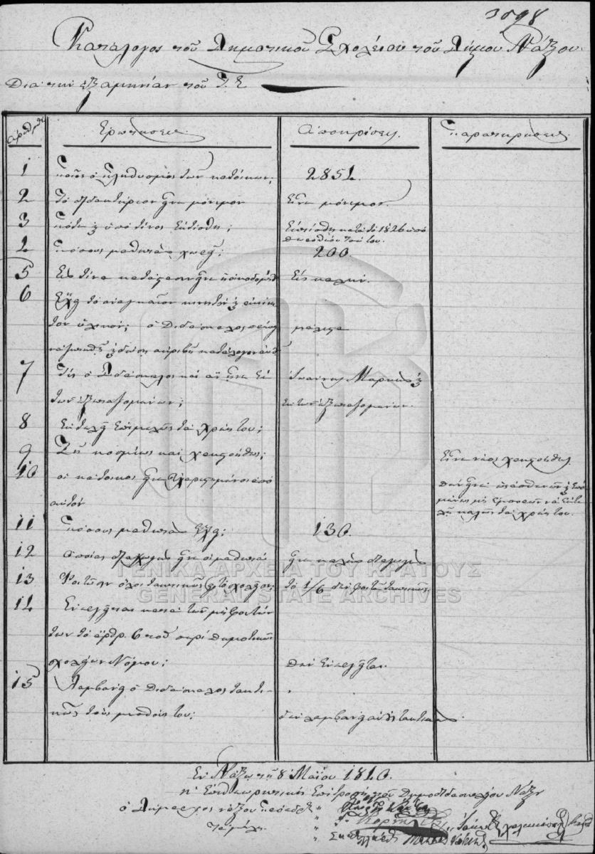 General issues concerning the boys' elementary schools of Naxos Administration. A. Exams and list.