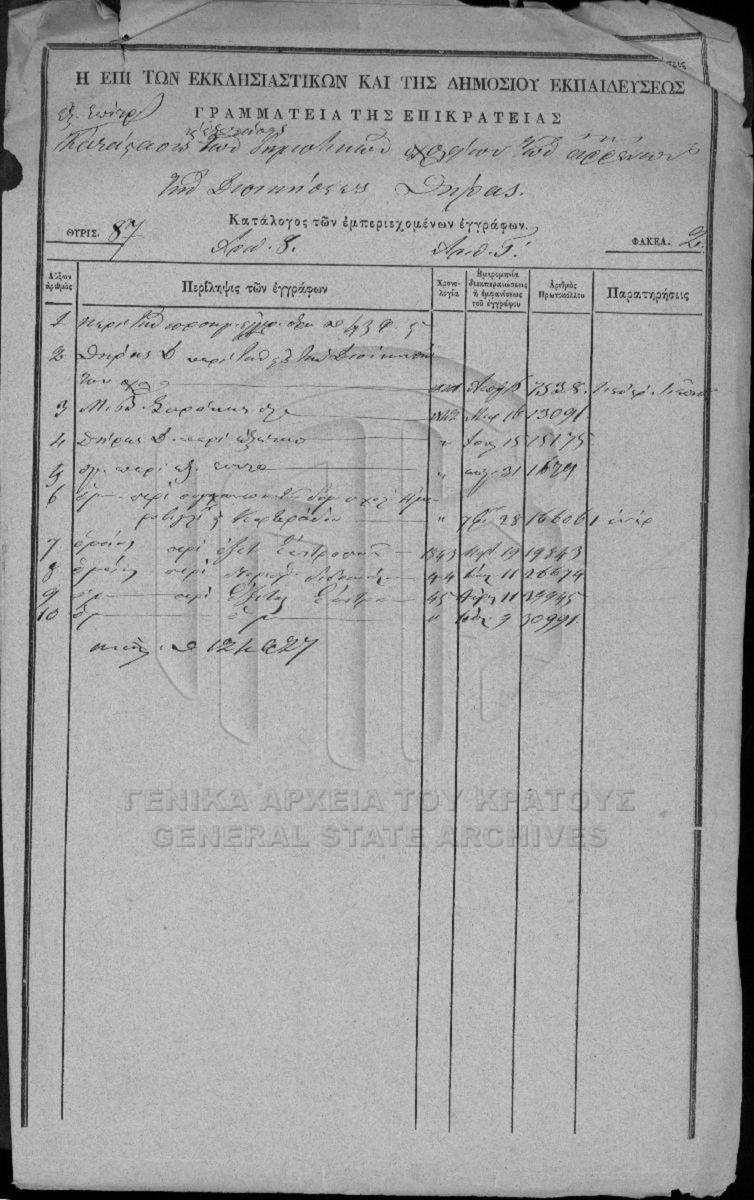 Fichiers généraux des écoles primaires de garçons de l’Administration de Théra.