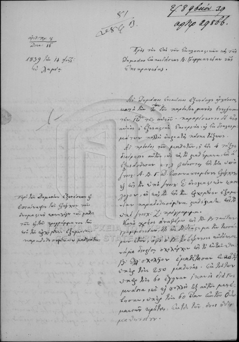 Φάκελος #2034 - Λαμίας Ελληνικόν Σχολείον  [1835 - 1839]