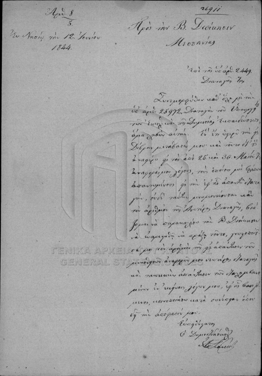 [Fonds] GRGSA-CSA_PAO013 ARCHIVES DE LA CHANCELLERIE/DU MINISTERE DES CULTES ET DE L'EDUCATION PUBLIQUE (1833-1848) - ARCHIVES DE LA CHANCELLERIE/DU MINISTERE DES CULTES ET DE L'EDUCATION PUBLIQUE (1833-1848) [1833 - 1848] Το αρχείο της Γραμματείας επί των Εκκλησιαστικών και της Δημοσίου Εκπαιδεύσεως διαρθρώνεται σε τρεις σειρές ως εξής: Ι. Σειρά των Εκκλη... |