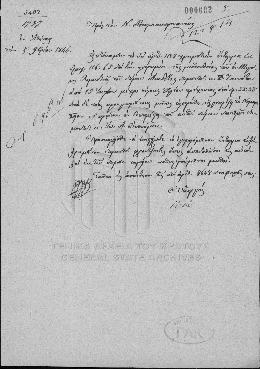 [Fonds] GRGSA-CSA_PAO013 SECRETARIAT/MINISTRY OF ECCLESIASTICAL ISSUES AND STATE EDUCATION ARCHIVE (1833-1848) - SECRETARIAT/MINISTRY OF ECCLESIASTICAL ISSUES AND STATE EDUCATION ARCHIVE (1833-1848) [1833 - 1848] Το αρχείο της Γραμματείας επί των Εκκλησιαστικών και της Δημοσίου Εκπαιδεύσεως διαρθρώνεται σε τρεις σειρές ως εξής: Ι. Σειρά των Εκκλη... |
