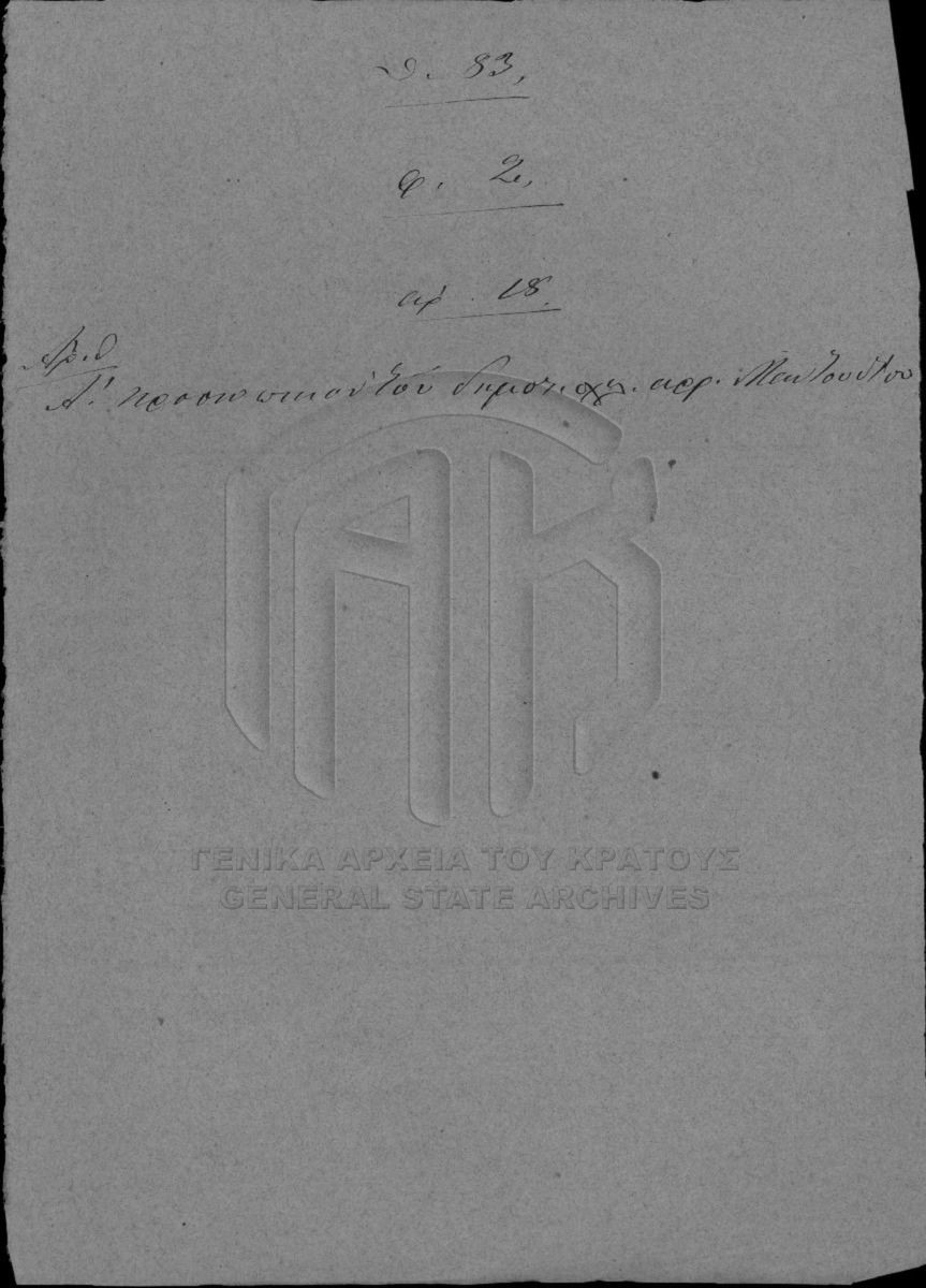 [File] GRGSA-CSA_PAO013.S02.01.F002145 File #2145 - SECRETARIAT/MINISTRY OF ECCLESIASTICAL ISSUES AND STATE EDUCATION ARCHIVE (1833-1848) [1842] Boys' Elementary School of Mantoudi. Staff. |