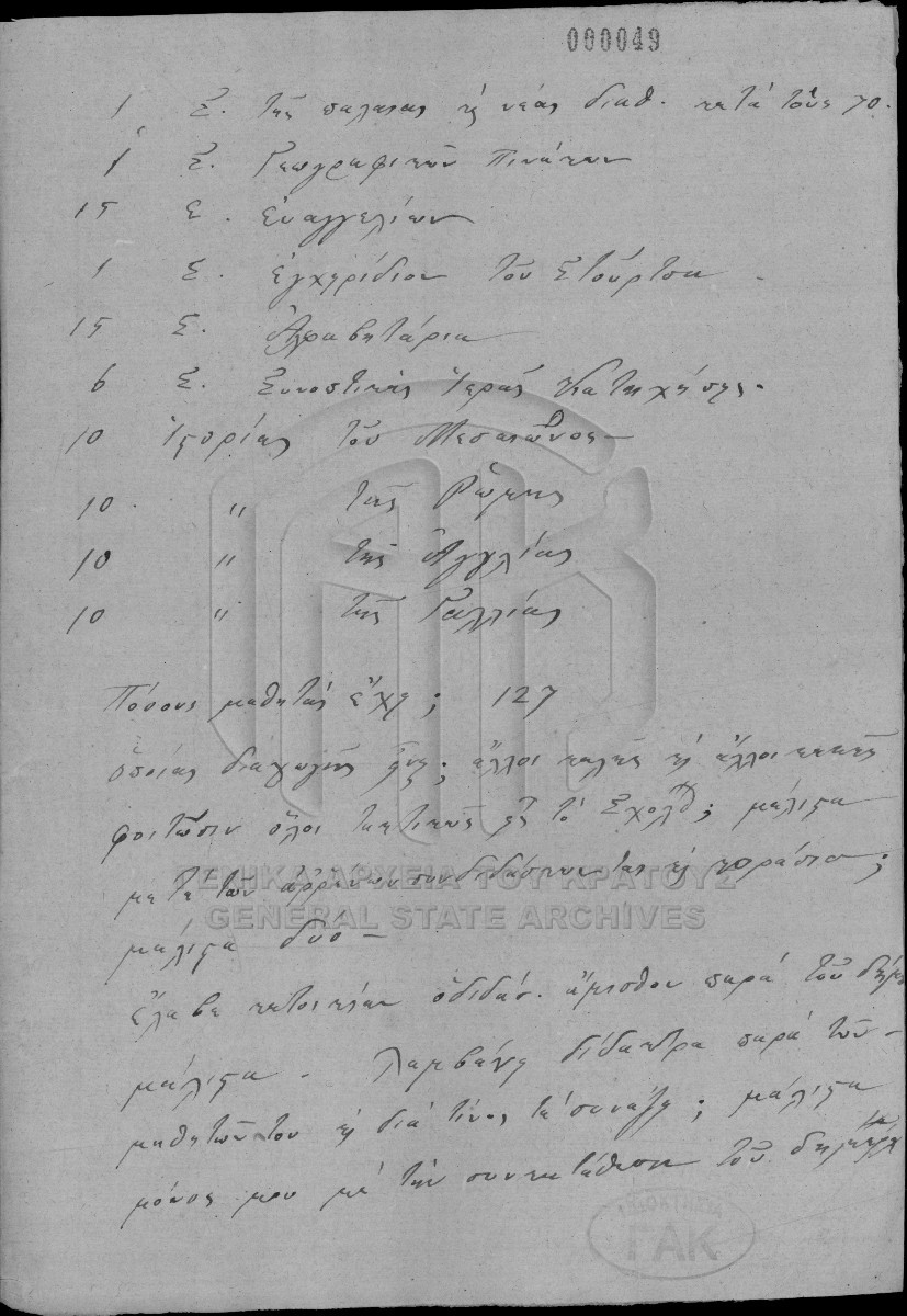 Fichiers généraux des écoles primaires et des maîtres d’école du Département de Messénie.