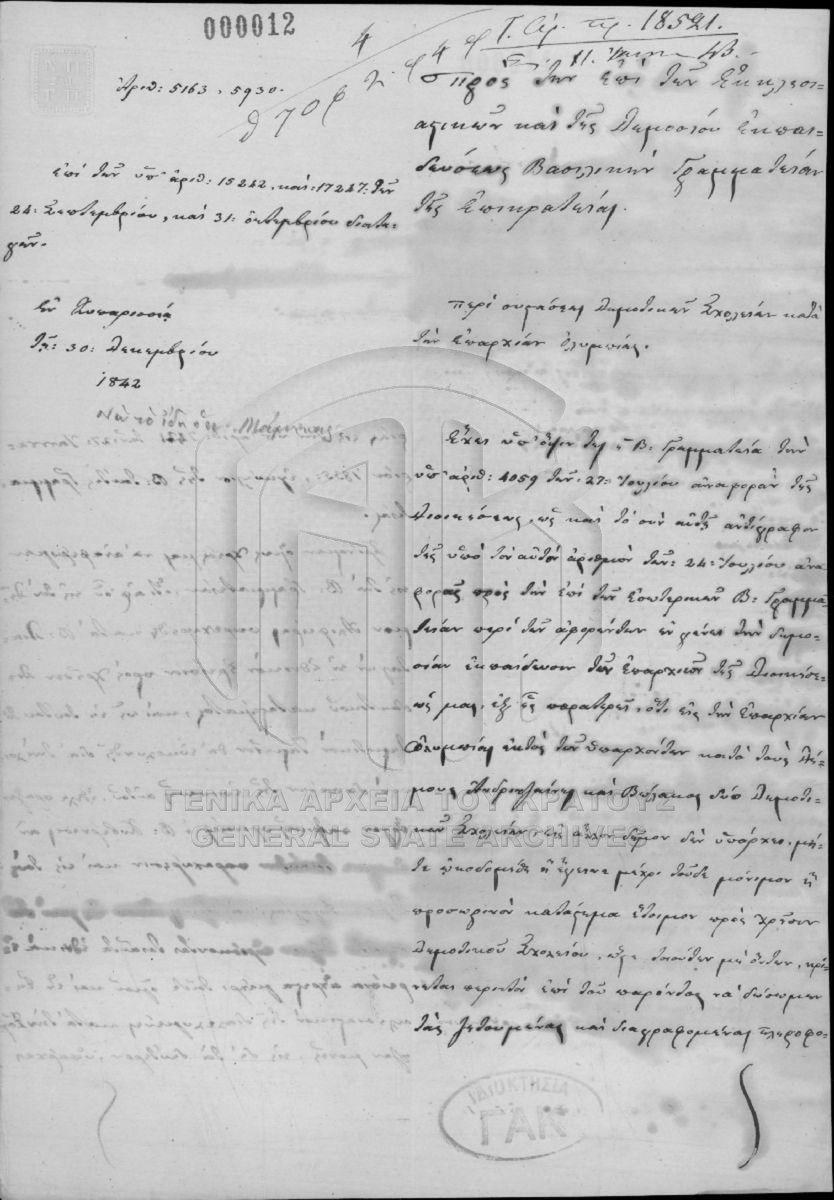 [Fonds] GRGSA-CSA_PAO013 ARCHIVES DE LA CHANCELLERIE/DU MINISTERE DES CULTES ET DE L'EDUCATION PUBLIQUE (1833-1848) - ARCHIVES DE LA CHANCELLERIE/DU MINISTERE DES CULTES ET DE L'EDUCATION PUBLIQUE (1833-1848) [1833 - 1848] Το αρχείο της Γραμματείας επί των Εκκλησιαστικών και της Δημοσίου Εκπαιδεύσεως διαρθρώνεται σε τρεις σειρές ως εξής: Ι. Σειρά των Εκκλη... |