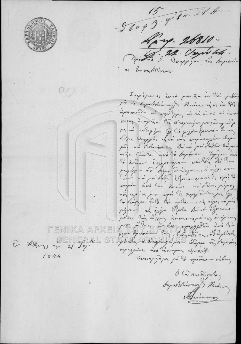 Φάκελος #2248 - Μινώης Δημοτικόν Σχολείον των αρρένων  [1843 - 1845]