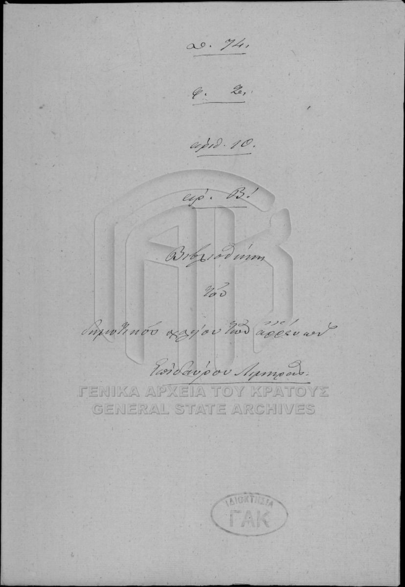 [Φάκελος] GRGSA-CSA_PAO013.S02.01.F002260 Φάκελος #2260 - Επιδαύρου Λιμηράς δημοτικόν σχολείον των αρρένων [1840 - 1842, 1844 - 1845] αρ.Α'. "Μισθοί του προσωπικού", αρ.Β'. "Βιβλιοθήκη", αρ.Γ'. "Προσωπικόν". |