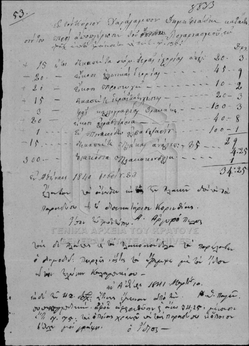 Boys' elementary school of Sikyona. List of students. Staff payroll. Staff. Library.