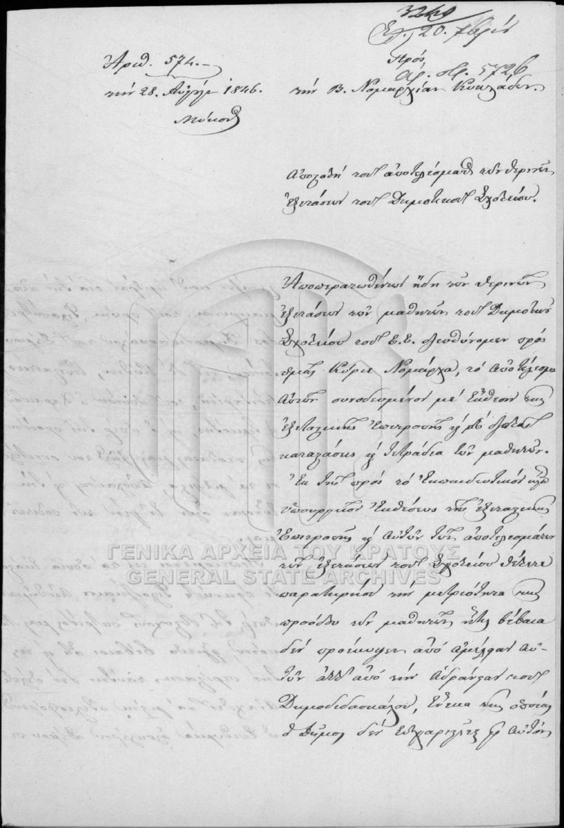 [Fichier] GRGSA-CSA_PAO013.S02.01.F002287 Fichier #2287 - ARCHIVES DE LA CHANCELLERIE/DU MINISTERE DES CULTES ET DE L'EDUCATION PUBLIQUE (1833-1848) [1846 - 1847] Municipalité de Mykonos, École primaire de garçons de Mykonos. |