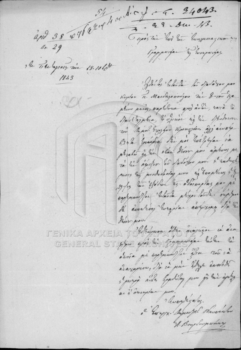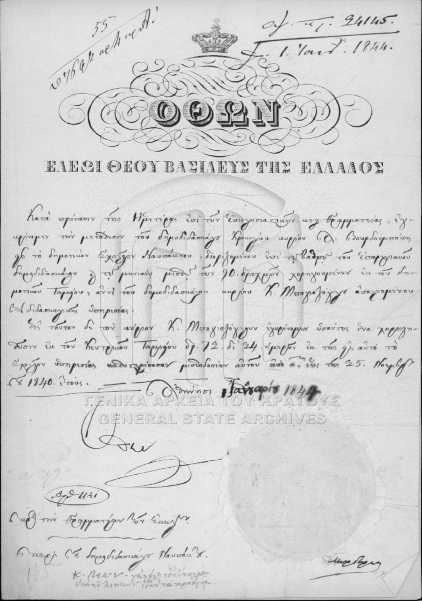 Φάκελος #2315 - Ναυπάκτου δημοτικόν σχολείον των αρρένων  [1840 - 1845]
