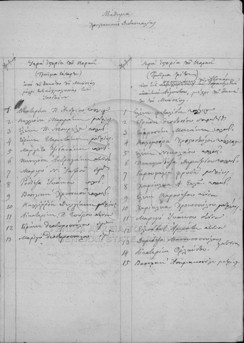 Girls' Elementary School of Nafplia. Staff. Facility. Examinations and Library.