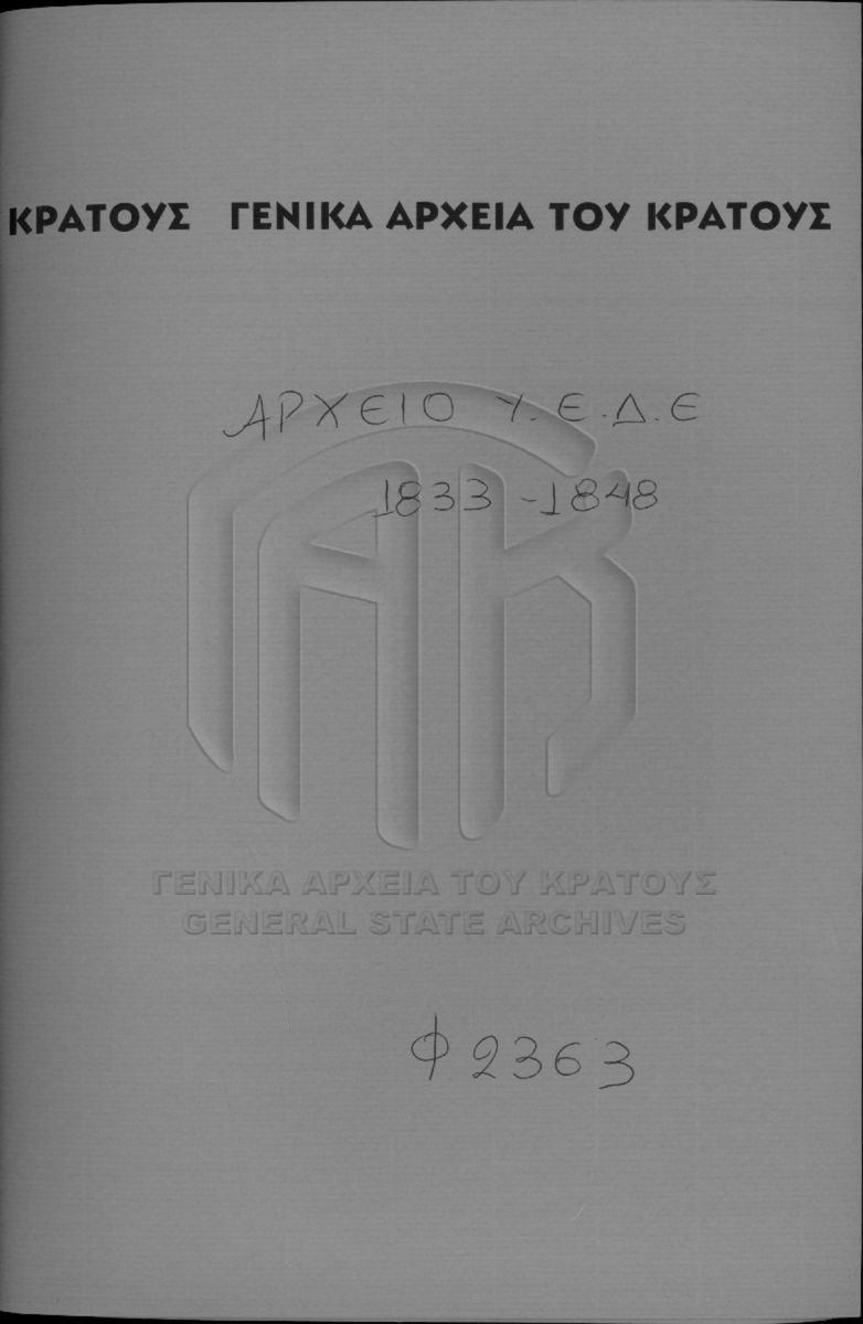[Fichier] GRGSA-CSA_PAO013.S02.01.F002363 Fichier #2363 - ARCHIVES DE LA CHANCELLERIE/DU MINISTERE DES CULTES ET DE L'EDUCATION PUBLIQUE (1833-1848) [1837 - 1839] Istiaia (Xerochori), école primaire. |