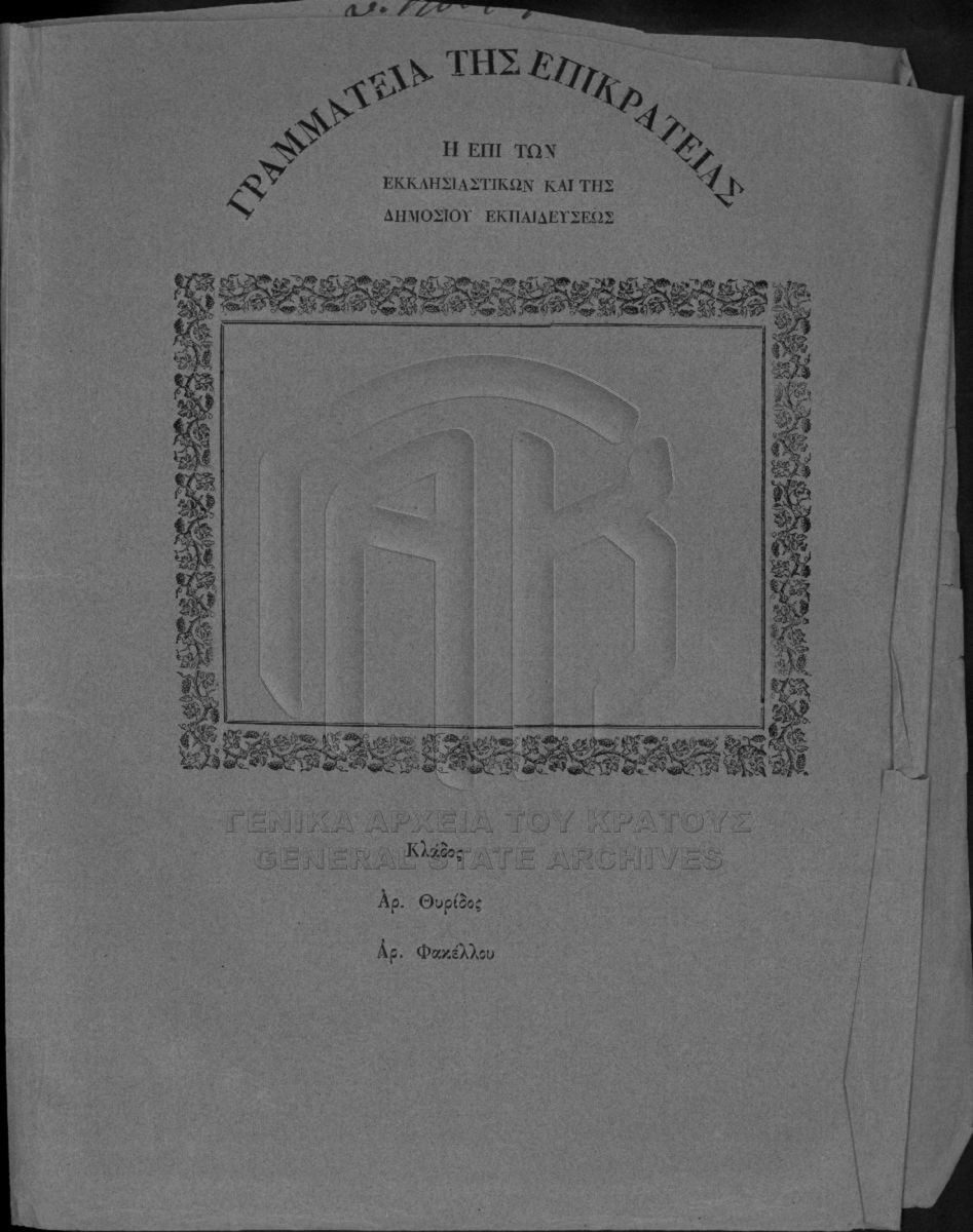 Το αρχείο της Γραμματείας επί των Εκκλησιαστικών και της Δημοσίου Εκπαιδεύσεως διαρθρώνεται σε τρεις σειρές ως εξής: Ι. Σειρά των Εκκλη...