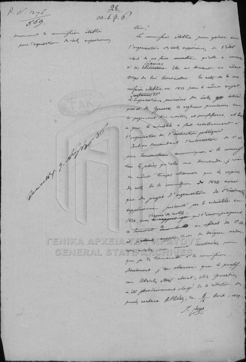 Αρχείο Γραμματείας / Υπουργείου Εκκλησιαστικών και Δημοσίου Εκπαιδεύσεως  [1833 - 1848]