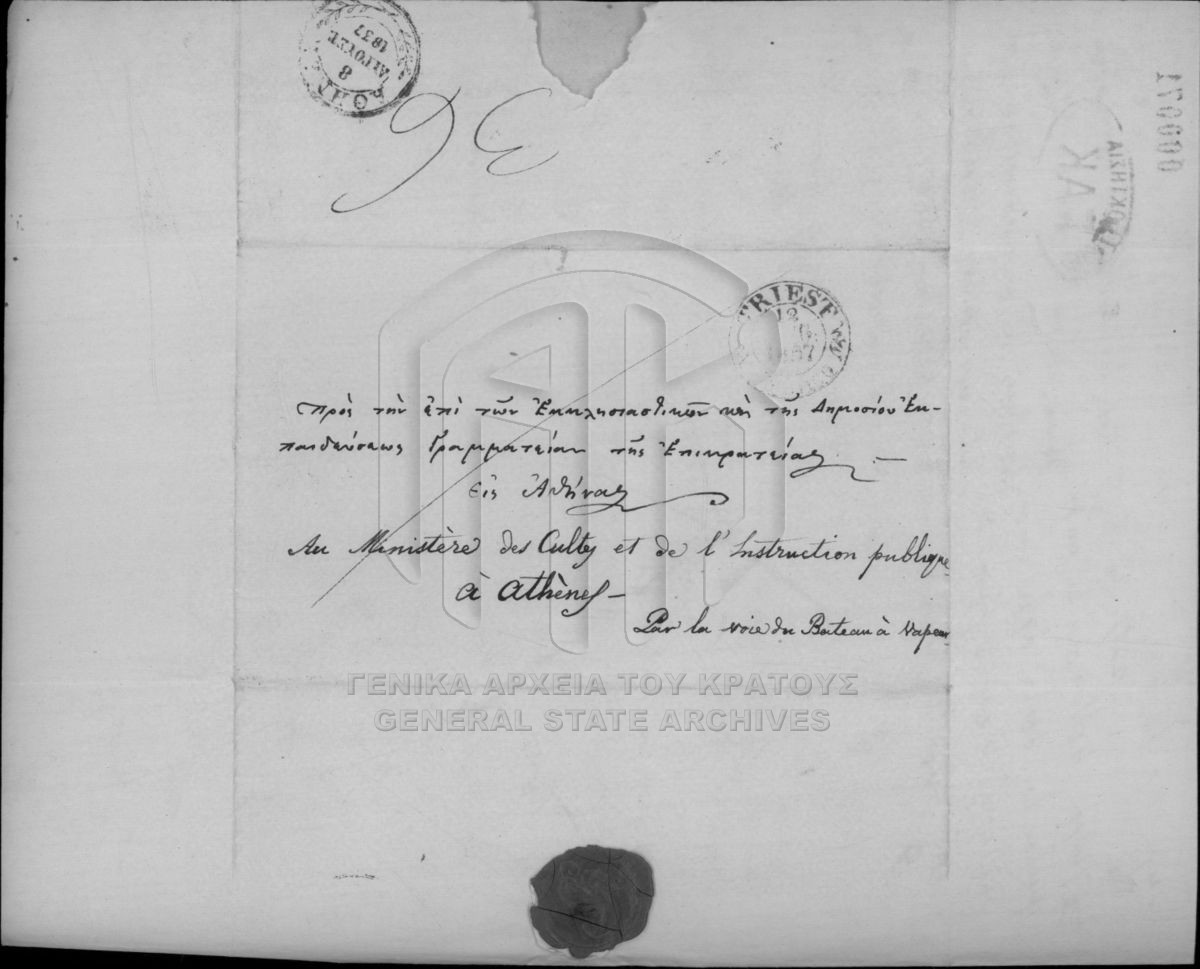 [Fonds] GRGSA-CSA_PAO013 ARCHIVES DE LA CHANCELLERIE/DU MINISTERE DES CULTES ET DE L'EDUCATION PUBLIQUE (1833-1848) - ARCHIVES DE LA CHANCELLERIE/DU MINISTERE DES CULTES ET DE L'EDUCATION PUBLIQUE (1833-1848) [1833 - 1848] Το αρχείο της Γραμματείας επί των Εκκλησιαστικών και της Δημοσίου Εκπαιδεύσεως διαρθρώνεται σε τρεις σειρές ως εξής: Ι. Σειρά των Εκκλη... |