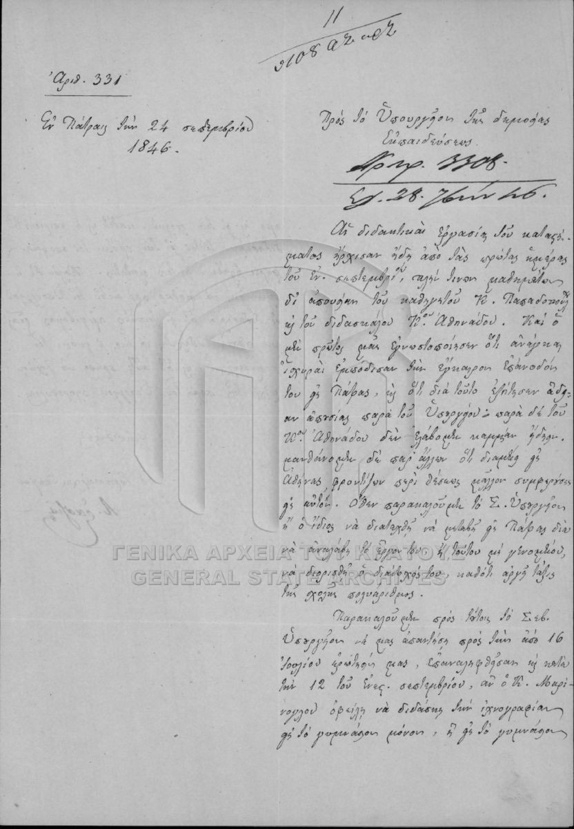 File #2514 - SECRETARIAT/MINISTRY OF ECCLESIASTICAL ISSUES AND STATE EDUCATION ARCHIVE (1833-1848)  [1846 - 1847]