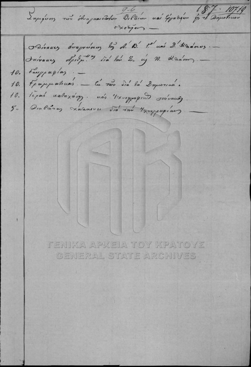 [Fonds] GRGSA-CSA_PAO013 SECRETARIAT/MINISTRY OF ECCLESIASTICAL ISSUES AND STATE EDUCATION ARCHIVE (1833-1848) - SECRETARIAT/MINISTRY OF ECCLESIASTICAL ISSUES AND STATE EDUCATION ARCHIVE (1833-1848) [1833 - 1848] Το αρχείο της Γραμματείας επί των Εκκλησιαστικών και της Δημοσίου Εκπαιδεύσεως διαρθρώνεται σε τρεις σειρές ως εξής: Ι. Σειρά των Εκκλη... |