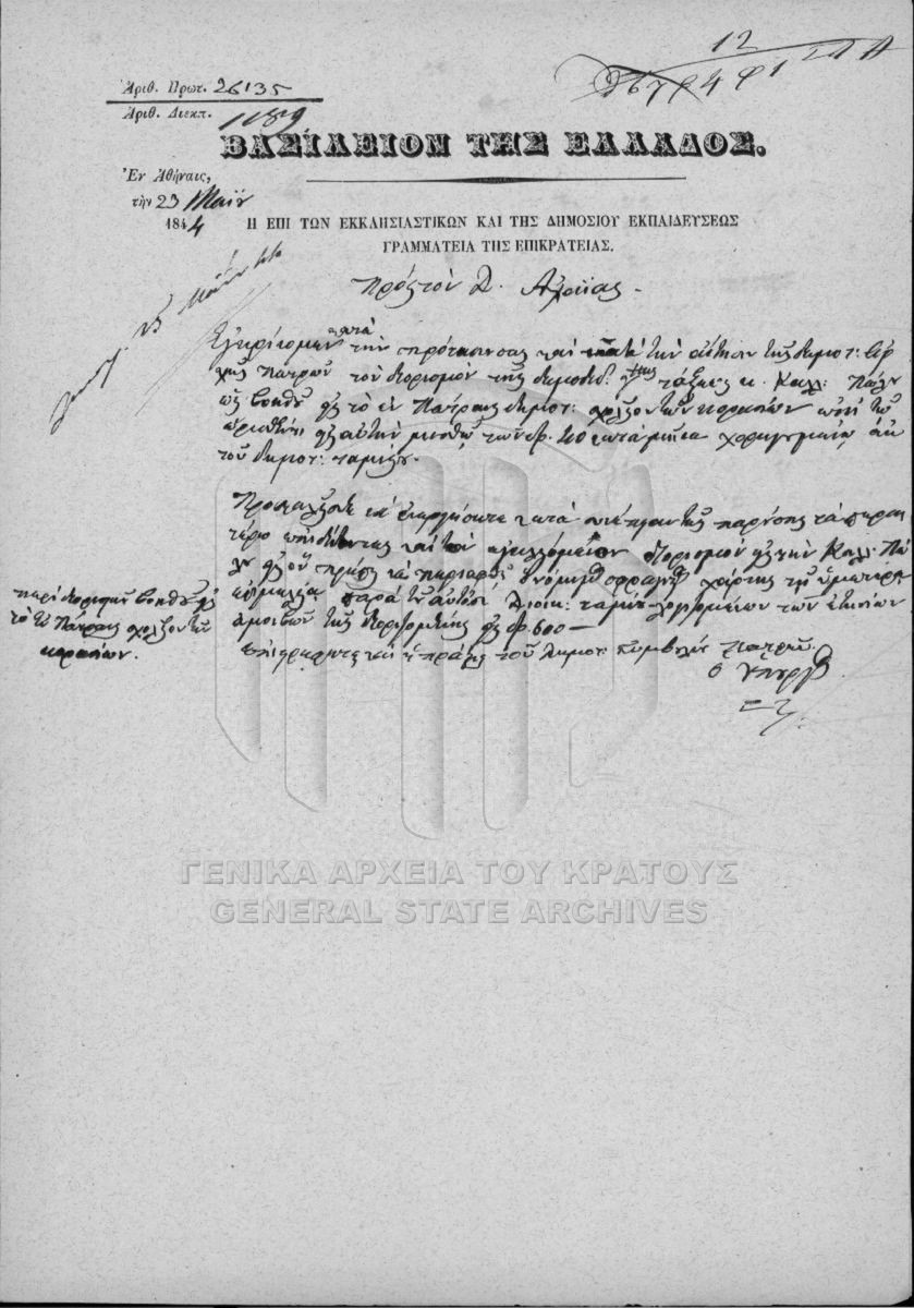 Αρχείο Γραμματείας / Υπουργείου Εκκλησιαστικών και Δημοσίου Εκπαιδεύσεως  [1833 - 1848]