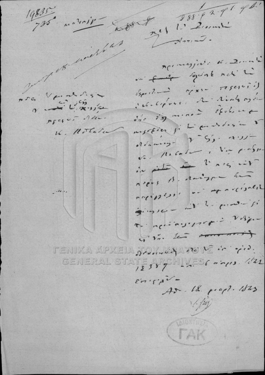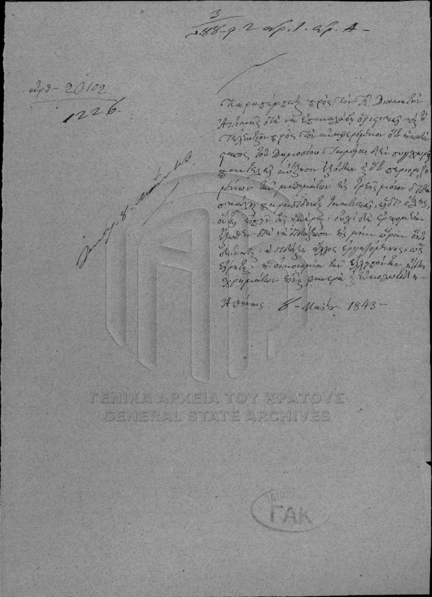 [Fonds] GRGSA-CSA_PAO013 SECRETARIAT/MINISTRY OF ECCLESIASTICAL ISSUES AND STATE EDUCATION ARCHIVE (1833-1848) - SECRETARIAT/MINISTRY OF ECCLESIASTICAL ISSUES AND STATE EDUCATION ARCHIVE (1833-1848) [1833 - 1848] Το αρχείο της Γραμματείας επί των Εκκλησιαστικών και της Δημοσίου Εκπαιδεύσεως διαρθρώνεται σε τρεις σειρές ως εξής: Ι. Σειρά των Εκκλη...  |