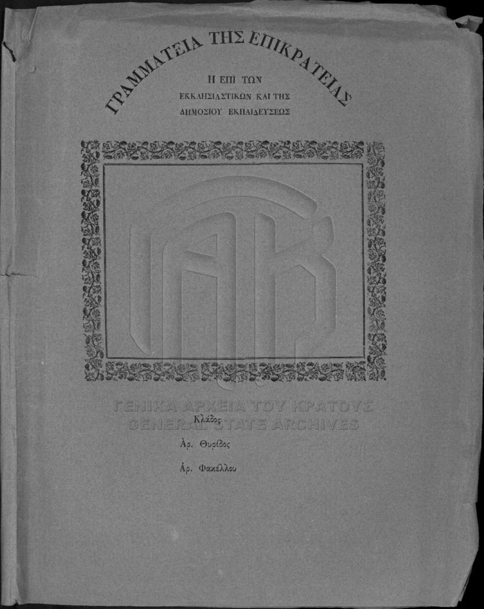 [Αρχείο] GRGSA-CSA_PAO013 Αρχείο Γραμματείας / Υπουργείου Εκκλησιαστικών και Δημοσίου Εκπαιδεύσεως [1833 - 1848] Το αρχείο της Γραμματείας επί των Εκκλησιαστικών και της Δημοσίου Εκπαιδεύσεως διαρθρώνεται σε τρεις σειρές ως εξής: Ι. Σειρά των Εκκλη...  |