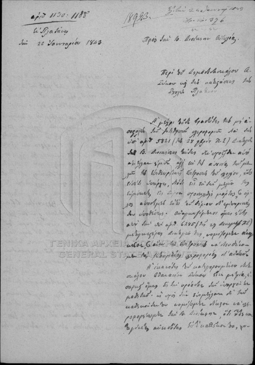[Fonds] GRGSA-CSA_PAO013 SECRETARIAT/MINISTRY OF ECCLESIASTICAL ISSUES AND STATE EDUCATION ARCHIVE (1833-1848) - SECRETARIAT/MINISTRY OF ECCLESIASTICAL ISSUES AND STATE EDUCATION ARCHIVE (1833-1848) [1833 - 1848] Το αρχείο της Γραμματείας επί των Εκκλησιαστικών και της Δημοσίου Εκπαιδεύσεως διαρθρώνεται σε τρεις σειρές ως εξής: Ι. Σειρά των Εκκλη... |