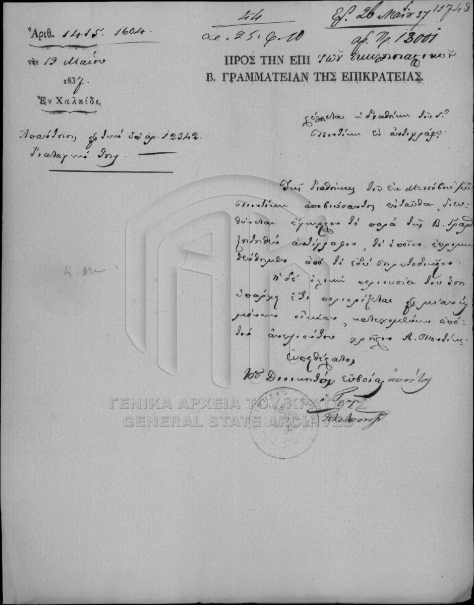 Φάκελος #2568 - Ποντίκης  [1836 - 1837]