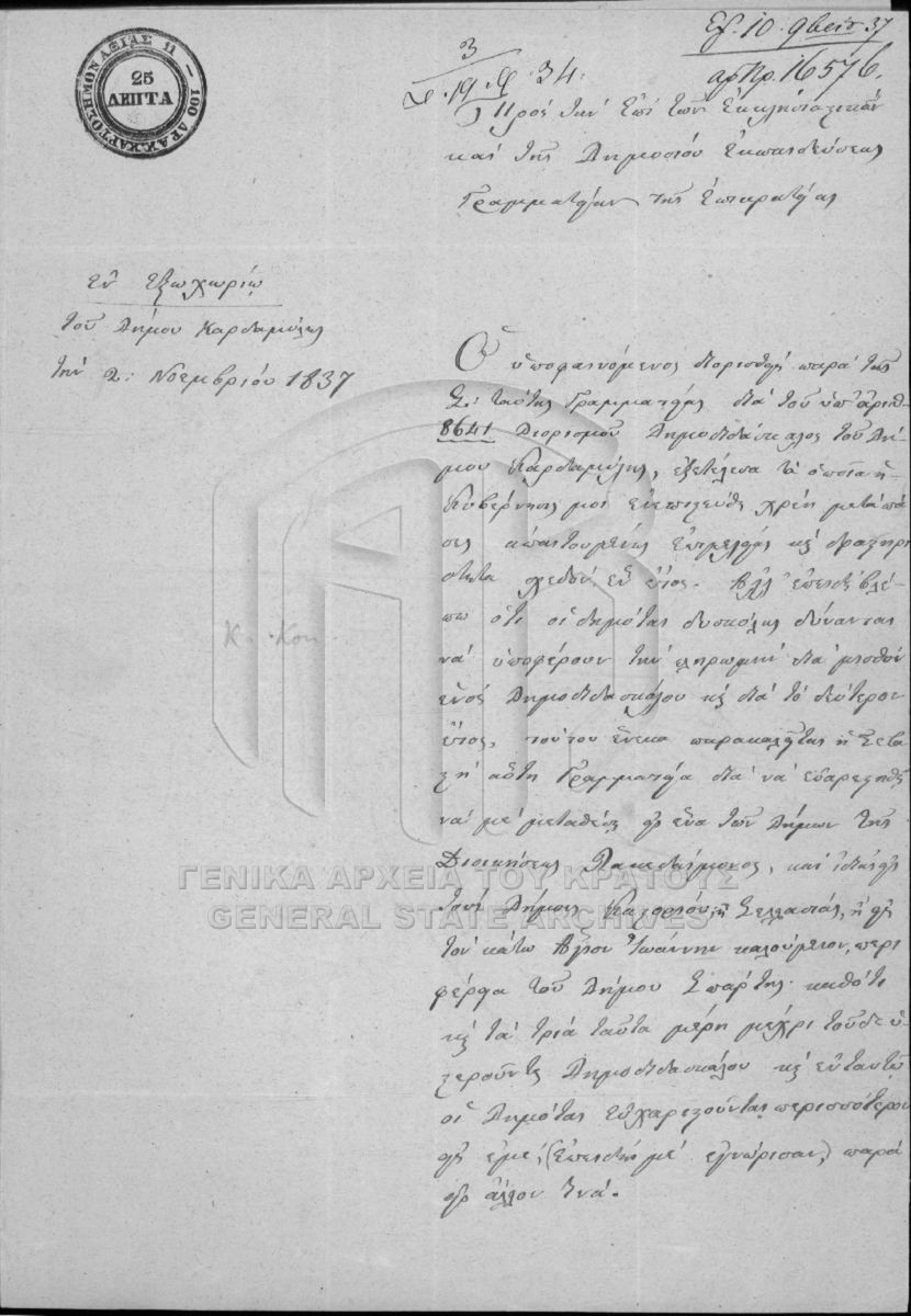 [File] GRGSA-CSA_PAO013.S02.01.F002594 File #2594 - SECRETARIAT/MINISTRY OF ECCLESIASTICAL ISSUES AND STATE EDUCATION ARCHIVE (1833-1848) [1837 - 1838] Elementary school of Proastio.  |