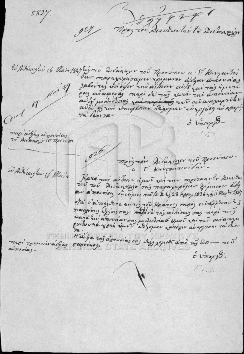 Αρχείο Γραμματείας / Υπουργείου Εκκλησιαστικών και Δημοσίου Εκπαιδεύσεως  [1833 - 1848]