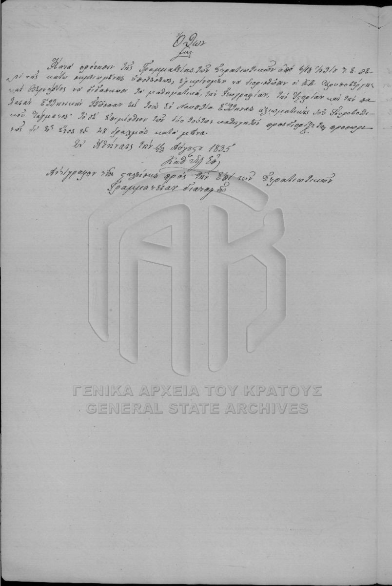 [Fonds] GRGSA-CSA_PAO013 SECRETARIAT/MINISTRY OF ECCLESIASTICAL ISSUES AND STATE EDUCATION ARCHIVE (1833-1848) - SECRETARIAT/MINISTRY OF ECCLESIASTICAL ISSUES AND STATE EDUCATION ARCHIVE (1833-1848) [1833 - 1848] Το αρχείο της Γραμματείας επί των Εκκλησιαστικών και της Δημοσίου Εκπαιδεύσεως διαρθρώνεται σε τρεις σειρές ως εξής: Ι. Σειρά των Εκκλη... |