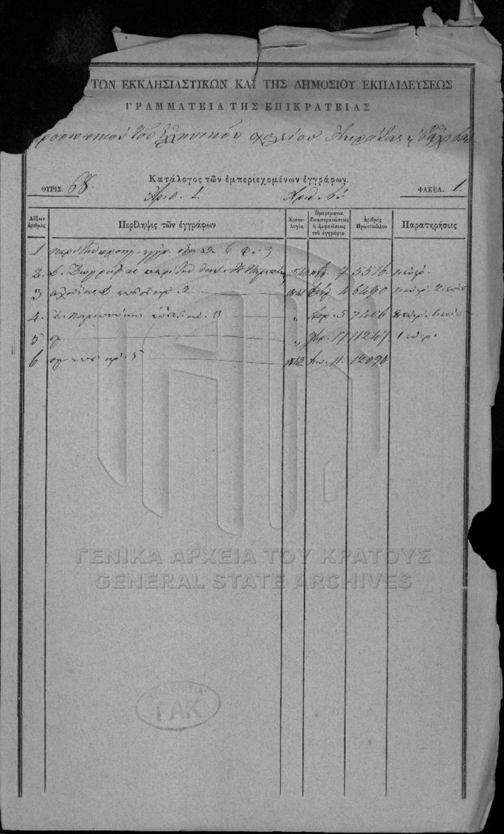 Το αρχείο της Γραμματείας επί των Εκκλησιαστικών και της Δημοσίου Εκπαιδεύσεως διαρθρώνεται σε τρεις σειρές ως εξής: Ι. Σειρά των Εκκλη...